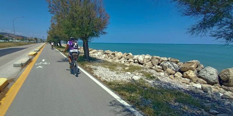 Nella parte finale si percorre quindi una compatta sterrata lungo il fiume, attraversandolo a poca distanza dal mare sul ponte della ciclovia Adriatica: proprio la ciclovia e le piste ciclabili del litorale permettono di arrivare a due passi dal mare, concludendo il tour sulle spiagge di Roseto degli Abruzzi.