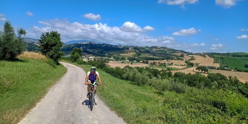 Da Cusciano la discesa si conclude sul veloce asfalto verso Montorio a Vomano, e da qui si costeggia il corso del fiume per oltre quaranta chilometri fino alla sua foce: l’itinerario cerca di mantenersi su strade secondarie o sterrate, anche se non mancano un divertente single track dopo Piane di Collevecchio, alcune ondulazioni e quale breve strappo in salita.