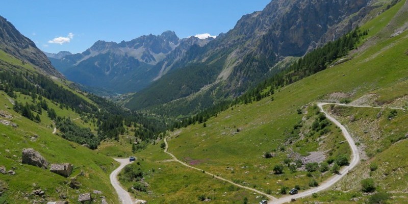 Si arriva così alle case in pietra e ai viottoli lastricati di Chiappera, l’ultimo borgo abitato della Val Maira dove l’architettura montana locale è ancora oggi preservata con cura; un ultimo tratto in asfalto e poi la salita ritorna sassosa regalando grandiose vedute sulle cascate di Stroppia e sui circostanti over-3000 di confine.