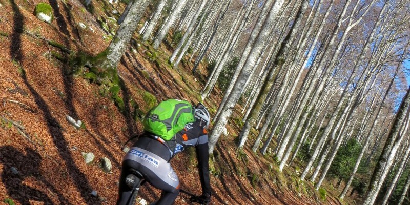 talvolta ripidi e sconnessi, dove il piede a terra è talvolta
