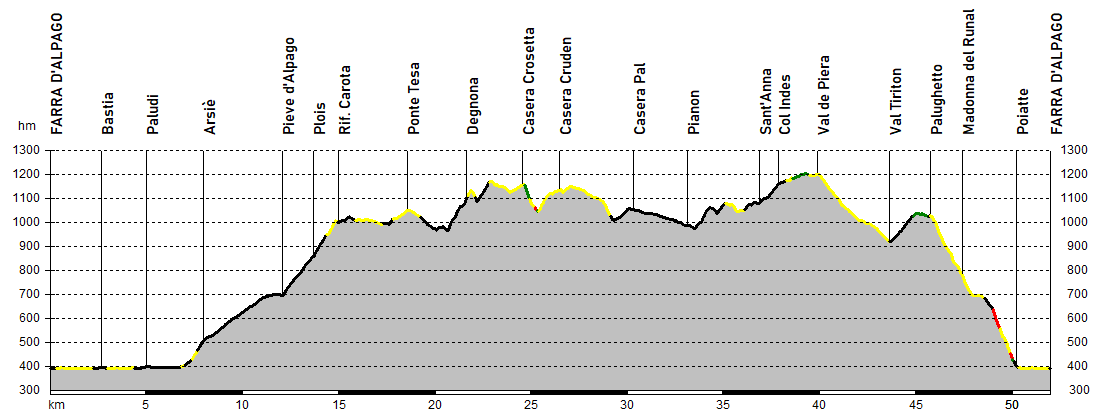 temibile successione di saliscendi della parte centrale del tour: a cominciare dal difficile asfalto di Degnona si affrontano infatti strappi corti ma intensi,