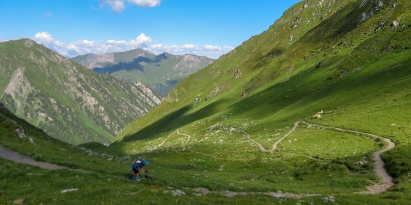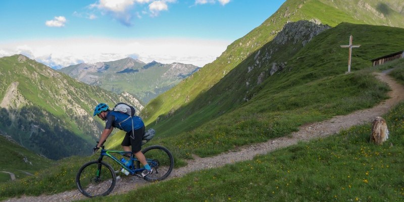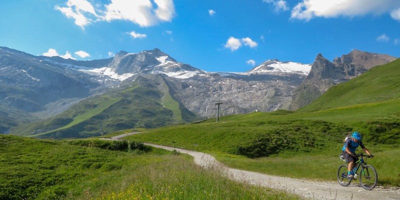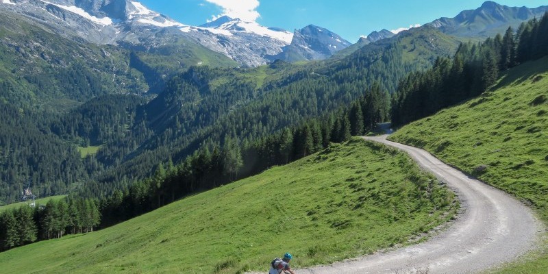 Per raggiungere il valico di Tuxer Joch si deve infatti prima arrivare alla Sommerbergalm: 6,5 chilometri dal fondo perfetto ma con pendenze che diventano proibitive nella seconda parte, in vista della stazione della cabinovia che parte da Hintertux (e che può rappresentare un’alternativa alla salita pedalata).
