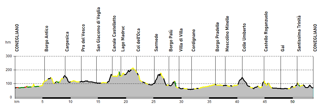 I dolci e panoramici rilievi dell’Altamarca orientale, la porzione più a nord della provincia di Treviso, fanno da scenario a questo itinerario che si snoda tra i tre centri più importanti della zona: Conegliano, Vittorio Veneto e Cordignano. Relativamente contenute sono le difficoltà tecniche, così come quelle altimetriche che però, dato il susseguirsi continuo di brevi asperità, potrebbero rivelarsi più impegnative del previsto.