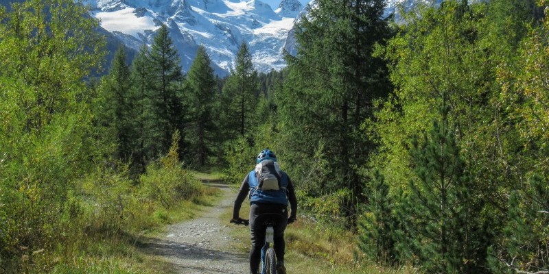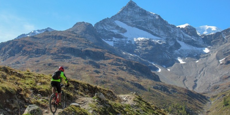 Un’ultima erta conquista quindi il lago del Bernina, che viene costeggiato dapprima su single track fino alla fermata di Ospizio Bernina e successivamente sulla comoda sterrata fino alla diga che delimita a sud il bacino idrico. Si scende quindi allo straordinario Belvedere dell’Alp Grum (grandioso panorama sulla sottostanteval Poschiavo e – verso ovest - sul ghiacciaio del Piz Palù e il lago omonimo), imboccando poi il difficile sentiero per Cavaglia dove si incontra il suggestivo “Giardino dei Ghiacciai”, un percorso attrezzato che esplora l’orrido di Cavaglia e le cavità naturali scavate dall’acqua.