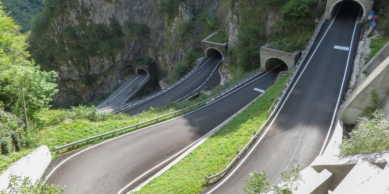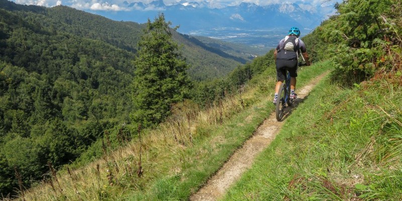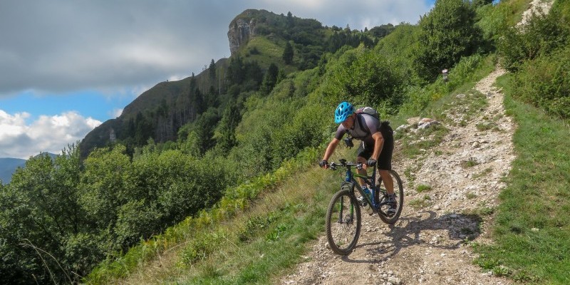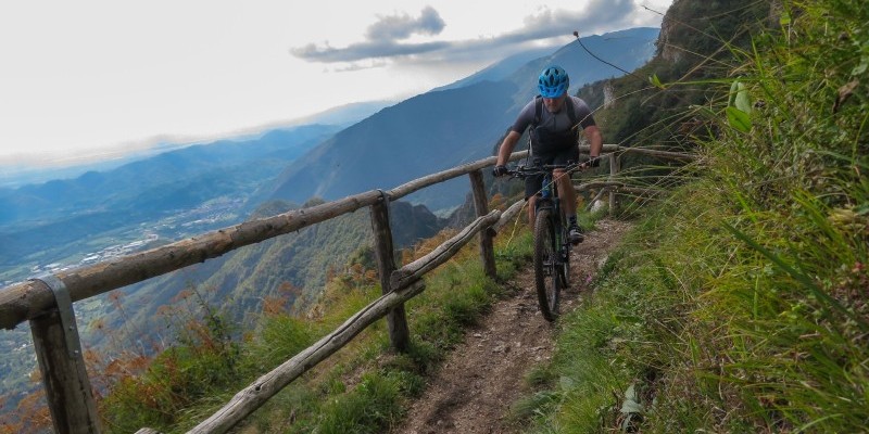 La famosa “Strada dei Cento Giorni” e i suoi tornanti scavati nella montagna caratterizzano la discesa finale, con alcune deviazioni nel bosco che evitano l’asfalto nella parte più bassa fino a Tovena. Il rientro al punto di partenza avviene tra le ciclabili, i campi e i prati della Valsana.