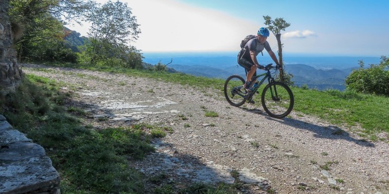 Dalla vicina forcella si gode quindi una meravigliosa vista su entrambi i versanti, dalla Valbelluna (a nord) fino alla Valsana e alla pianura (a sud), continuando poi su un veloce single track che va a innestarsi su una carrareccia accidentata, arrivando infine al Passo San Boldo.
