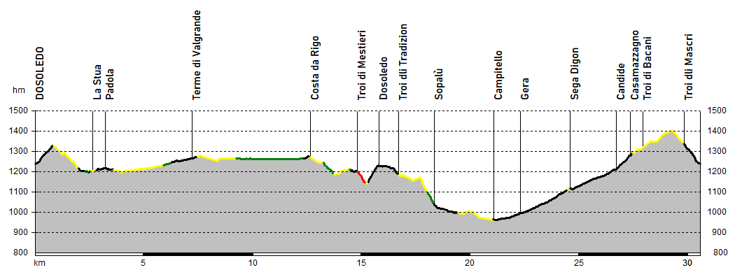 Dosoledo, intersecando il “Troi dli Mascri” (delle Maschere) già incontrato in avvio.