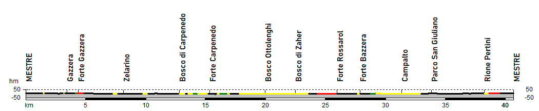 L’itinerario inizia dal centro di Mestre e sftruttando i percorsi ciclabili tocca il Forte Gazzera spostandosi poi verso Zelarino; da qui si raggiunge il Bosco di Carpenedo e il forte omonimo, prima di spostarsi a nord-est verso il "cuore" del Bosco di Mestre.