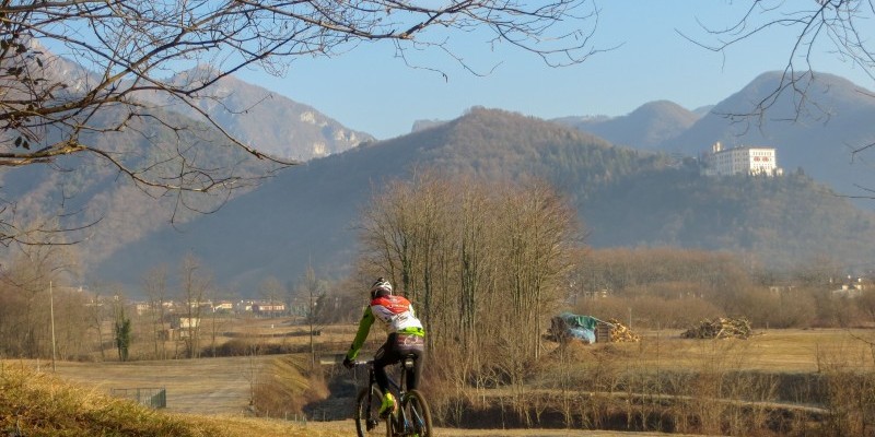 tutta la cresta collinare in direzione ovest, attraversando con rispetto e cautela alcune proprietò private (transito in bici tollerato) e ammirando Castelbrando da