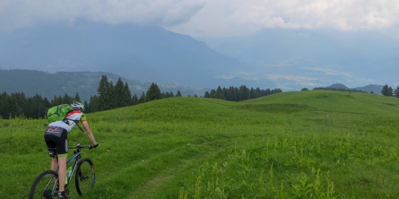 tuffa tra i panoramici prati affacciati sulle Pale di San Martino e
