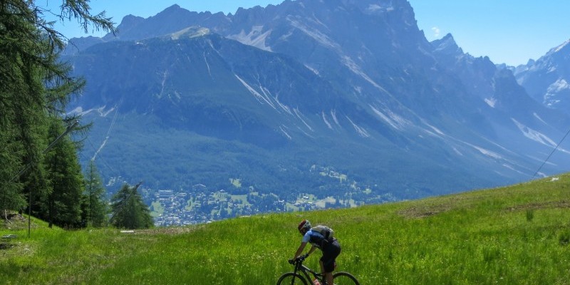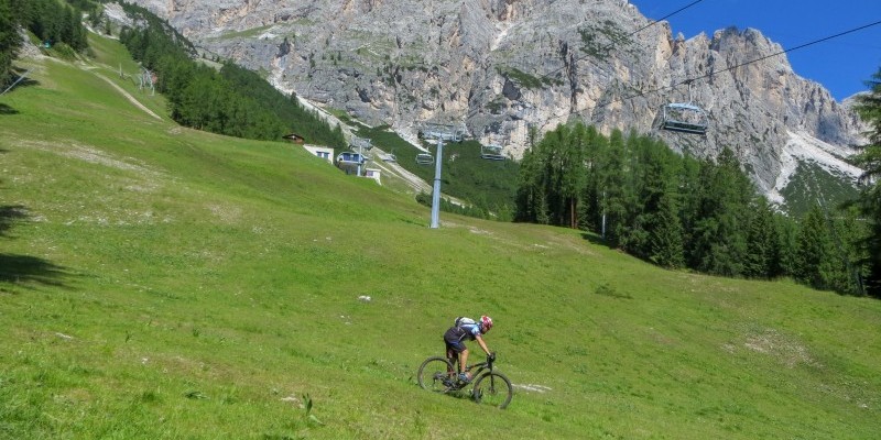 delle Tofane, un divertente sentiero scende tra boschi e piste da sci