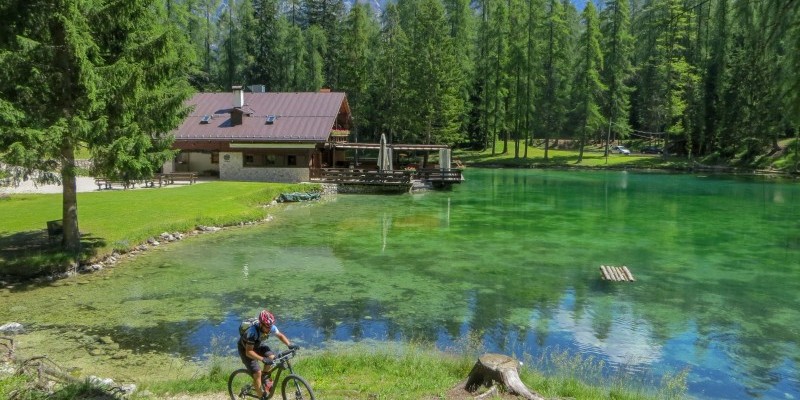 sul single track che raggiunge l’idilliaco lago Ghedina.