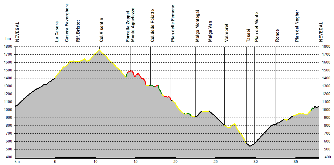 tornanti per Ronce, diventando poi più pedalabile nel Pian del Nogher