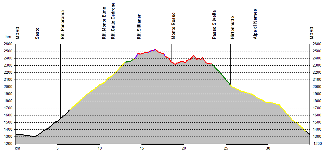 raggiunge Sesto dove ha inizio l’ascesa sui tornanti del Monte Elmo: dalle pendenze