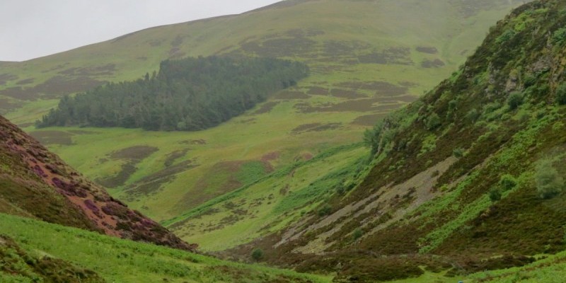 Un sentiero ghiaioso si addentra infatti nelle Pentland, in un ambiente spoglio e privo di alberi, popolato da pecore che si inerpicano sui pendii erbosi di Hare Hill e Black Hill: tra questi due bassi rilievi si valica il Green Cleugh scendendo poi su una traccia sconnessa nella verdeggiante valle di Howe.