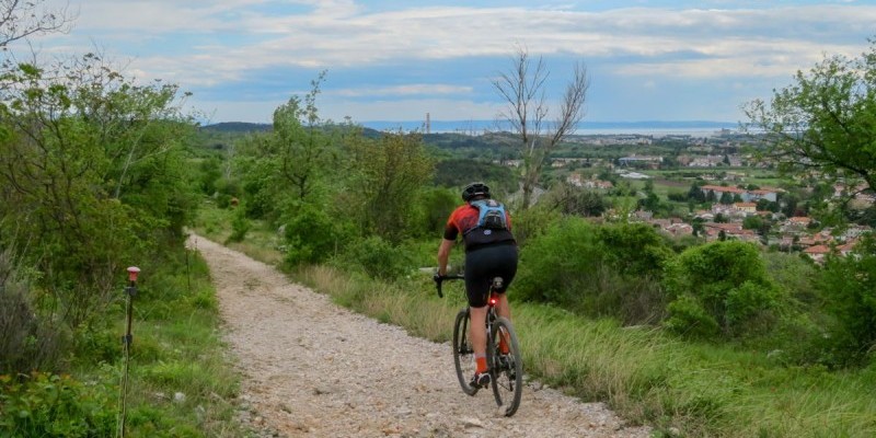 Poco più avanti ecco l’ultima asperità, alle pendici del Carso fino al monte Sei Busi: con la vista che spazia fino al mare e il tipico fondo sassoso carsico si prosegue costeggiando le trincee fino al monte Cosici, scendendo poi definitivamente su Monfalcone.