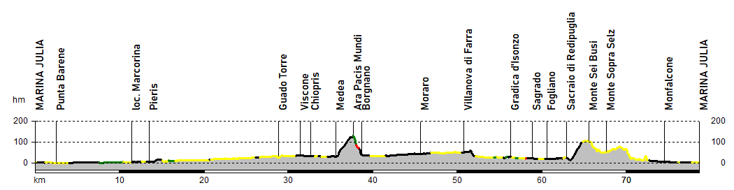 Si lambisce la città pedalando ai bordi degli imponenti bastioni difensivi tornando ben presto nelle vicinanze del fiume e attraversandolo nuovamente in vista di Sagrado. Un interlocutorio tratto in asfalto raggiunge quindi i piedi dell’imponente Sacrario Militare di Redipuglia.