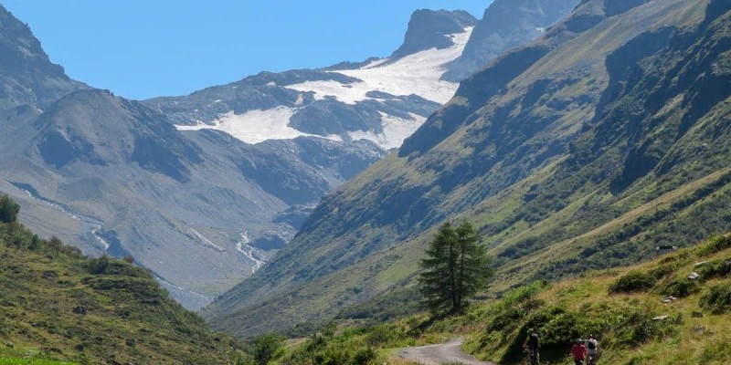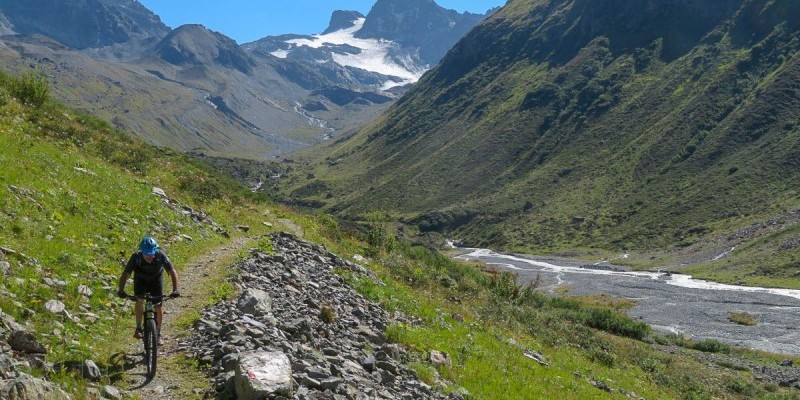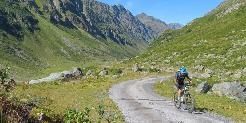 Pedalando verso il ghiacciaio nell'idilliaca valle di Jamtal