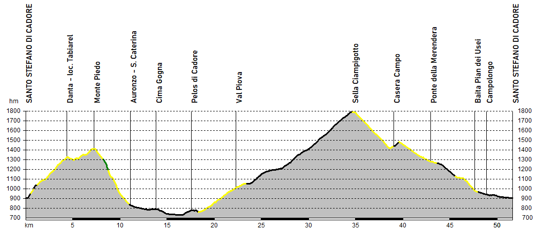 La lunga picchiata si conclude quindi a Campolongo, distante da Santo Stefano solo pochissimi chilometri in leggera discesa.