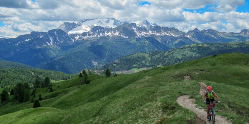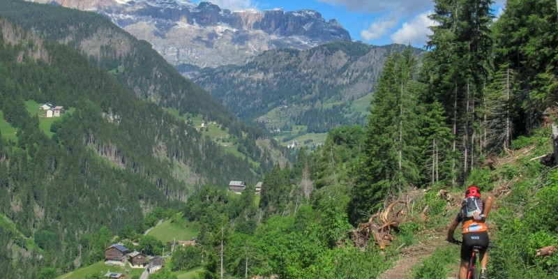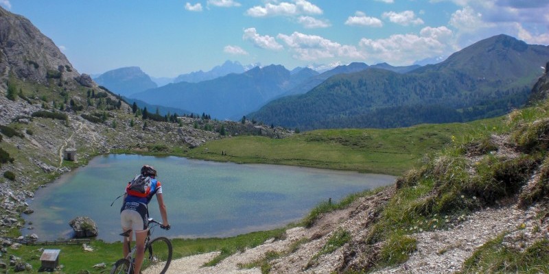 Questo itinerario affronta il periplo completo del Col di Lana, la vetta fatta saltare nella "guerra delle mine" dall'esercito italiano durante il Primo Conflitto Mondiale. Due sono le salite principali, al Pralongià e al Passo Valparola, lungo le quali si potranno ammirare spettacolari vedute sulle Dolomiti della Val Badia e dell'alta Val Cordevole.