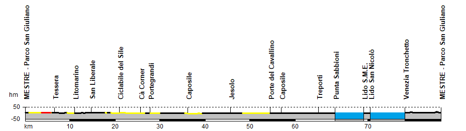 sterrato proseguendo poi su strade asfaltate secondarie fino a Jesolo, e