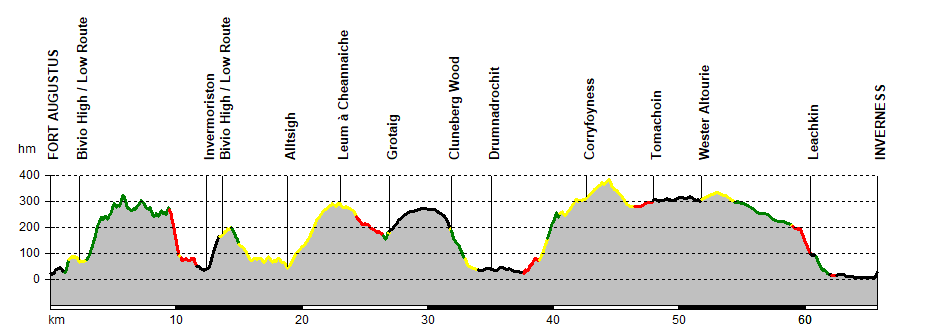 La metà più settentrionale della Great Glen Way racchiude tutte le difficoltà dell’intero tour, seguendo per intero il lago di Loch Ness con salite a ripetizione, sentieri senza fine e ambienti isolati: subito dopo Fort Augustus i primi strappi (prima Blairconard su asfalto e poi un ripido tratturo nel bosco) danno accesso all’agevole strada sterrata che ospita il bivio tra la panoramica “high route” e la più semplice “low route”, una scorciatoia che raggiunge Invermoriston con dislivelli ridotti.