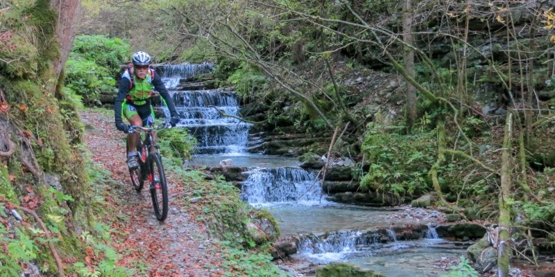 lungo il torrente tra stretti ponticelli e piccoli guadi fino a Valle