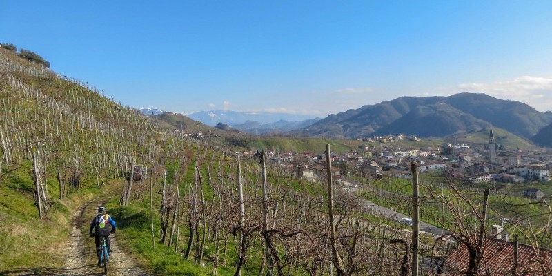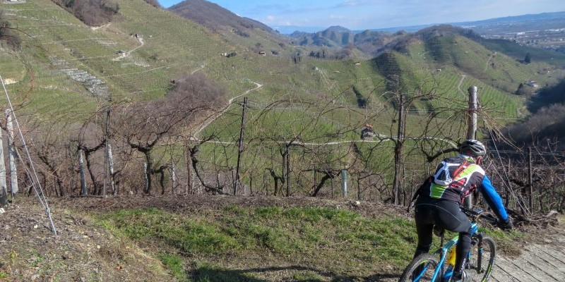 la suggestiva Strada del Cartizze, tornando quindi a salire per Follo e