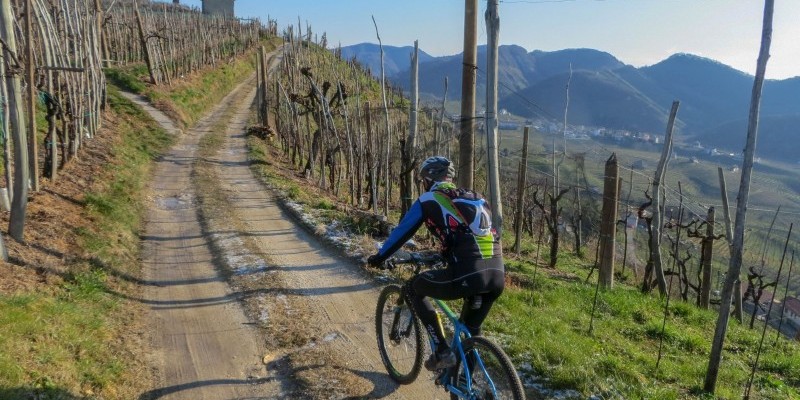 del tour: dal fondo per lo più cementato, l’ascesa tra i boschi del Col