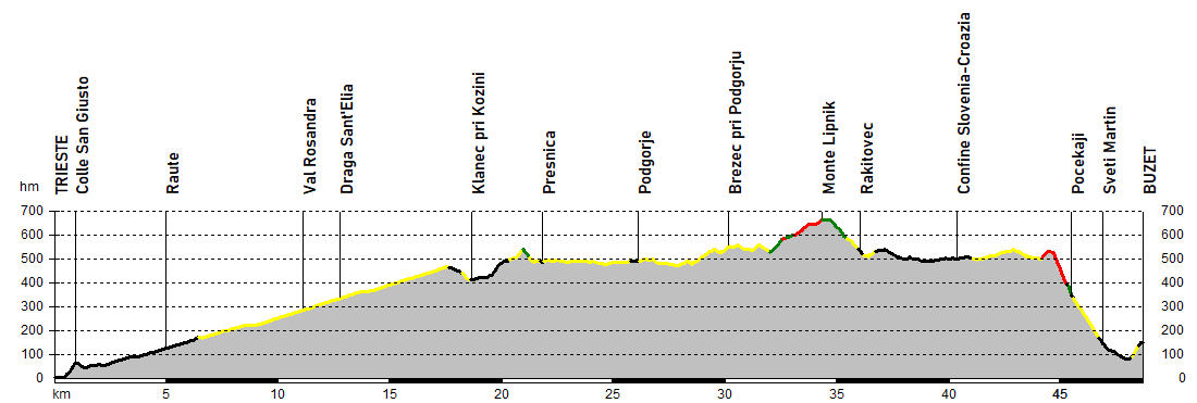 La Croazia accoglie il tour con paesaggi aperti e prevalentemente incolti che accompagnano fin sul lembo meridionale dell’altopiano dove d’improvviso la vista si apre sulla conca di Buzet, distante solo pochi chilometri di discesa.