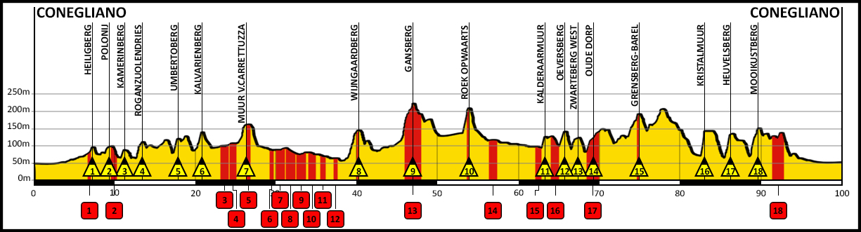 La traccia ufficiale de LA RONDA edizione 2018, la manifestazione ciclistica ispirata alle Classiche del Nord che si svolge ogni anno a Conegliano (TV): il Giro delle Fiandre... a mille chilometri dal Belgio!