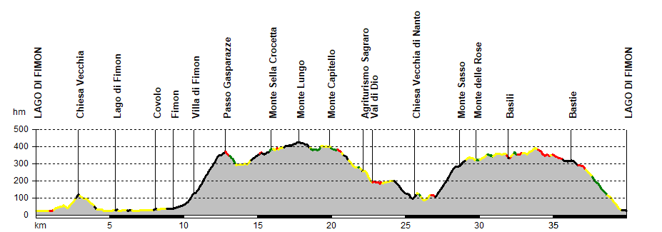 alla discesa conclusiva che offre panoramiche vedute sul lago di Fimon.