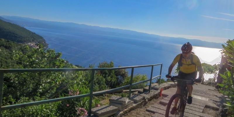 spiaggia di Mošćenička Draga sfruttando un vecchio tratturo tra gli