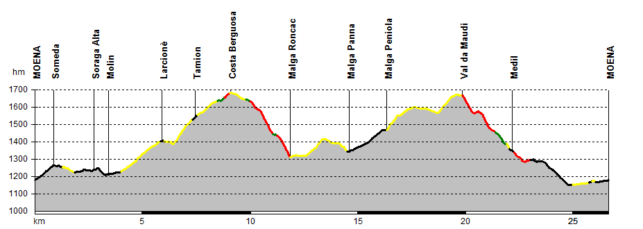 La principale località della Val di Fassa, Moena, si trova al centro di una grande conca verso la quale le alte vette circostanti degradano con fitti boschi e vasti prati: qui, alle quote più basse, si possono raggiungere con estrema facilità luoghi idilliaci che spesso passano in secondo piano se paragonati ad altre più celebri mete della zona. L’itinerario tocca infatti borghi silenziosi e sentieri poco frequentati, prati e boschi rilassanti regalando momenti di tranquillità anche in una delle mete più gettonate delle Dolomiti.