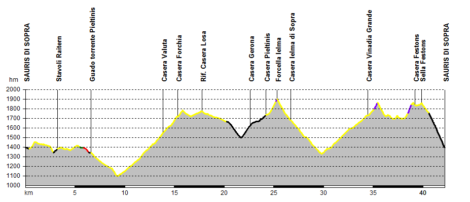 tornando poi a salire nel suggestivo anfiteatro del monte Pieltinis. A