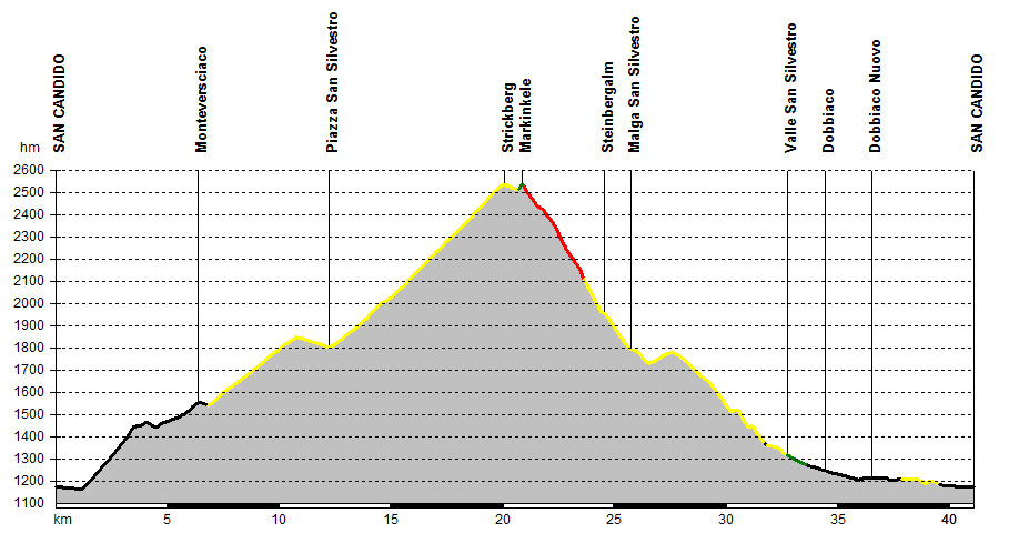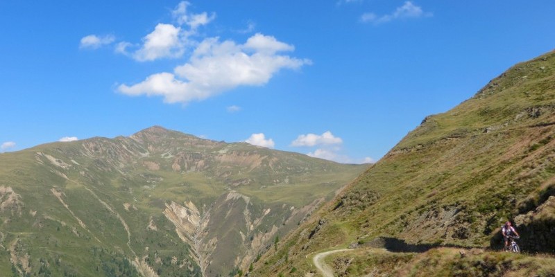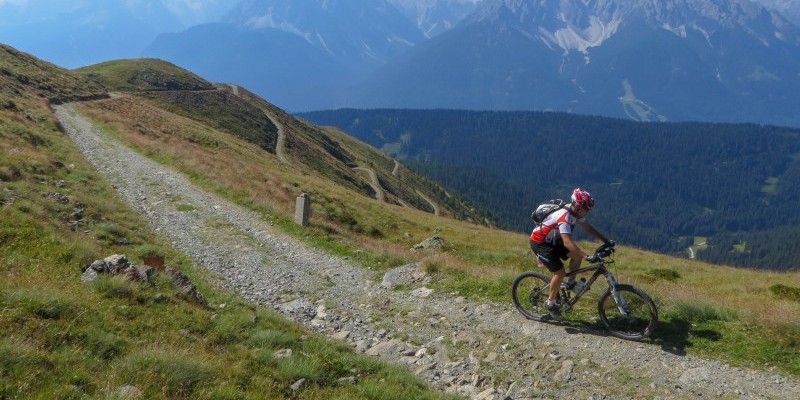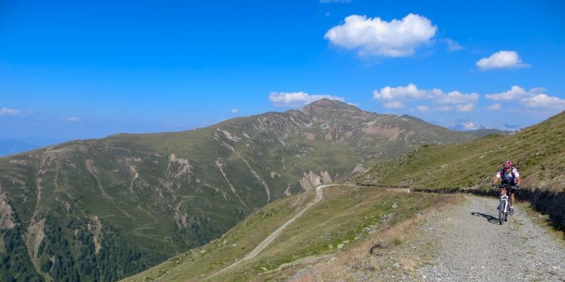 Itinerario MTB ed Ebike al Cornetto di Confine (Markinkele) con salita da San Candido e discesa nella Blankental e quindi in Valle San Silvestro.
