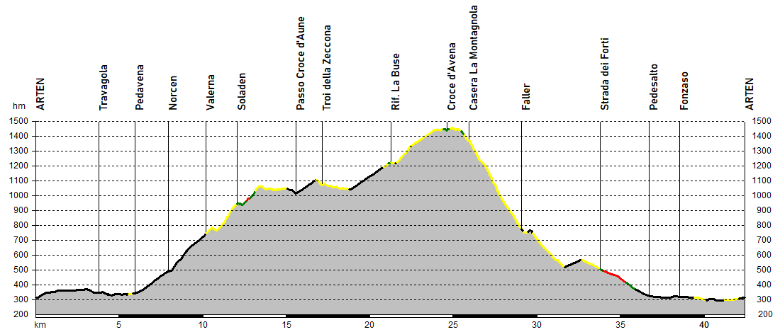Si parte da Arten raggiungendo subito Pedavena, continuando poi