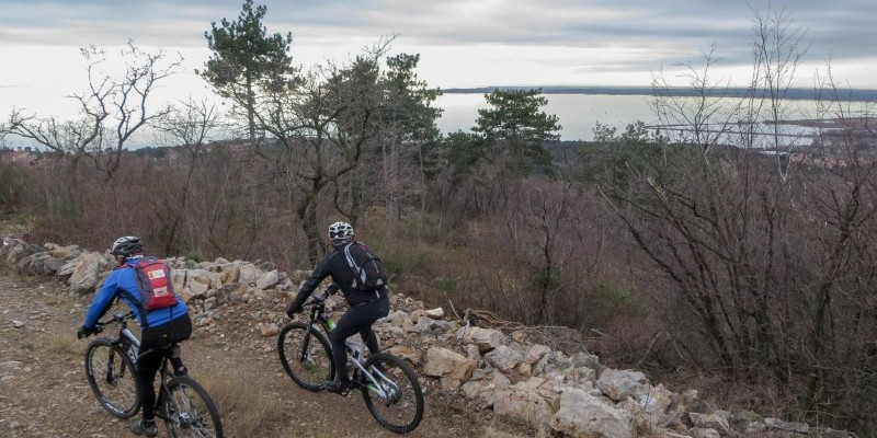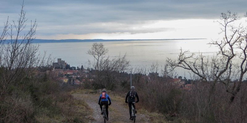 Non resta quindi che tornare verso la costa: affrontato un primo single track irto di rocce, il tour scende con passaggi panoramici verso il castello di Duino. Nel finale, i divertenti sentieri tra le trincee del Bosco della Cernizza conducono a pochi metri dal mare nei pressi del Villaggio del Pescatore.