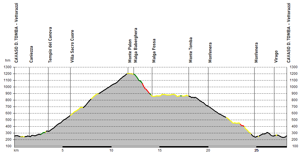 Valcavasia senza incontrare grosse difficoltà tecniche, rientrando infine verso Cavaso con un trasferimento piuttosto ondulato tra strade
