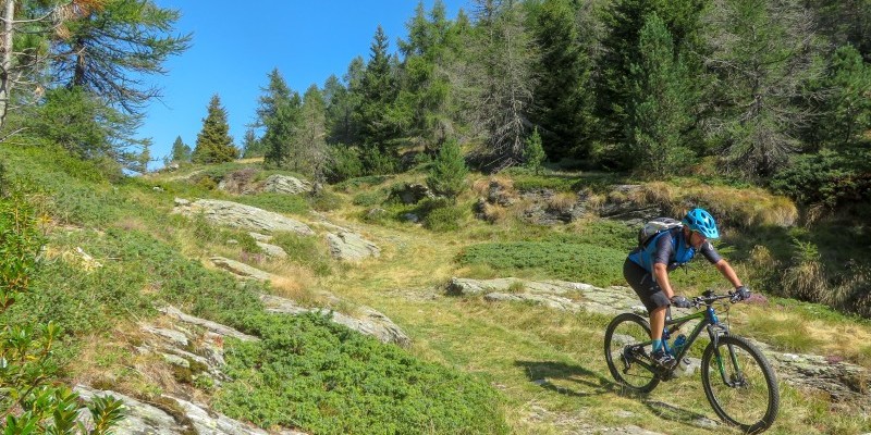 La difficile e ripidissima picchiata si conclude in località Garboi: un tratto pianeggiante anticipa infine la picchiata conclusiva sui single track di Grano e della Strada dei Ronchi.