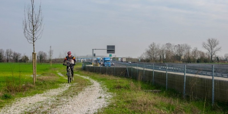 di strade secondarie e interessanti passaggi sterrati come l’argine del Serraglio