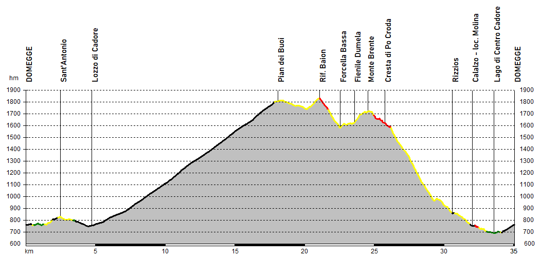 sviluppo fino allo scollinamento ai piedi del monte Ciastelin, il picco più
