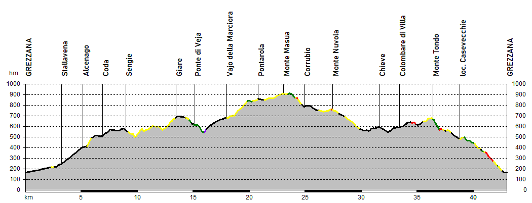 inizia a salire con regolarità verso Alcenago e Coda; si imbocca quindi