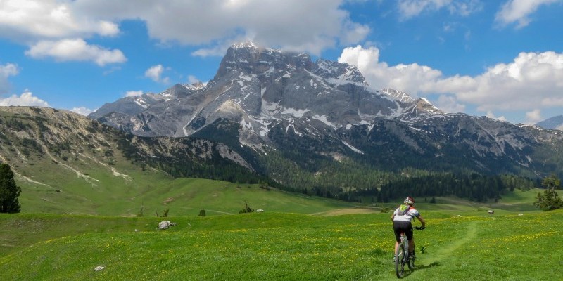 sull’erboso single track affacciato sulla Croda Rossa e sui prati