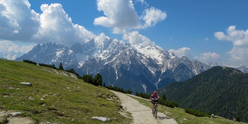 Itinerario MTB a Prato Piazza e monte Specie, in Val Pusteria. Salita pedalabile da Carbonin e discesa su Ponticello.