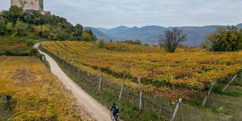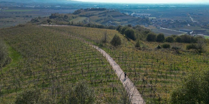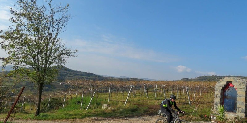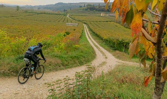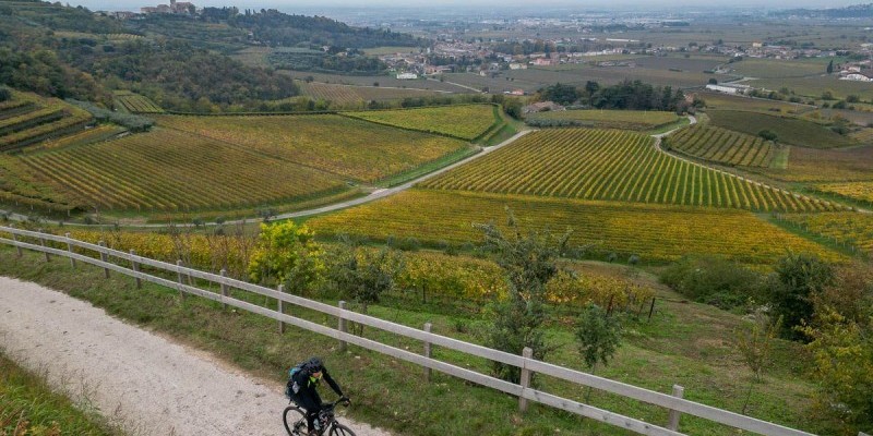 La val d’Alpone, risalita fin quasi a Montecchia di Crosara su comode sterrate, non presenta invece grosse difficoltà fino alle porte di Roncà dove l’altimetria si fa più movimentata. Con il paesaggio che alterna vigne, oliveti e piccoli borghi si affronta infatti il Sentiero dell’Alpino salendo poi sul colle che domina Gambellara: si tratta della salita più impegnativa del tour, seguita da una discesa su un sentiero a tratti tecnico e sconnesso.