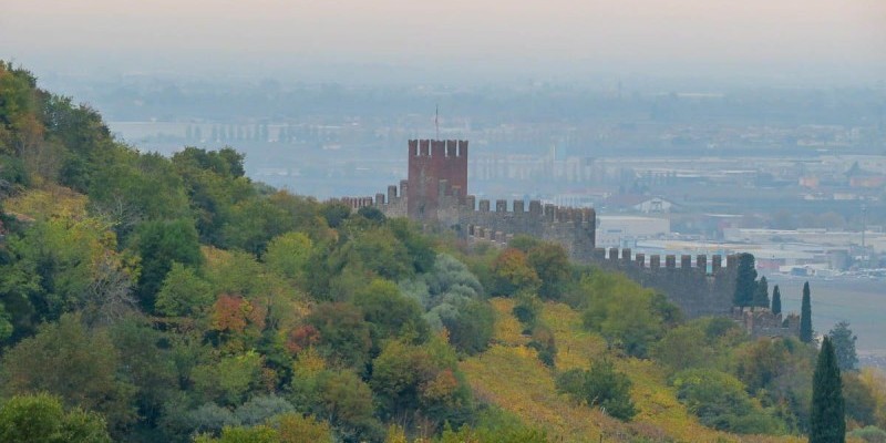 Una prima difficile rampa conduce quindi a Monte di Colognola, e risalendo poi il panoramico crinale tra strade bianche e vigneti ondulati si arriva al Castello di Illasi. Qui, nelle giornate limpide, la vista corre fino ai monti Lessini.