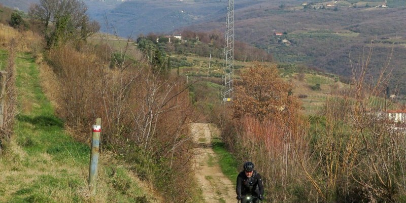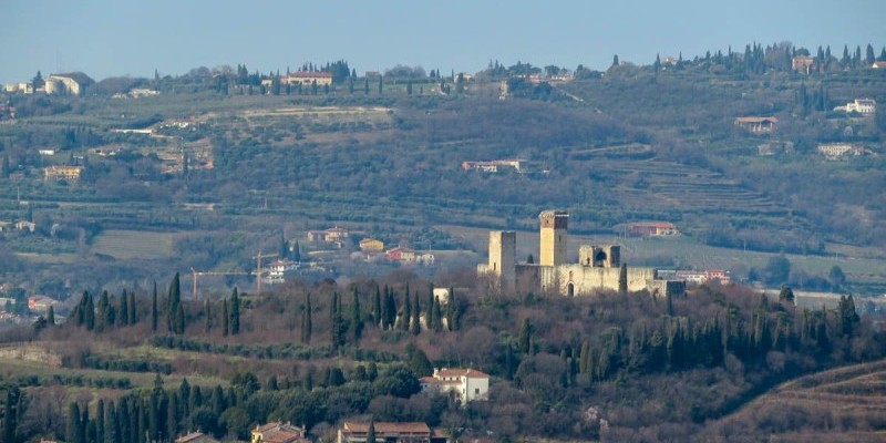 Da Montorio si vanno invece ad affrontare i tornantini che conducono alla spianata del Piloton, dalla quale si imbocca la carrareccia che in discesa conduce all'imponente castello medievale di Montorio.