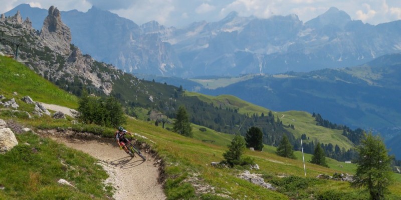 L’utilizzo estivo degli impianti di risalita attorno al gruppo del Sella permette di chiudere l’anello più celebre delle Dolomiti senza troppe difficoltà, faticando poco in salita e godendosi lunghissime e adrenaliniche discese su sentieri dalle caratteristiche più svariate: in senso antiorario si copriranno infatti ben 3500 metri di dislivello negativo a fronte dei soli 410 metri pedalati in salita, sfruttando sette impianti. Informazioni su costi e biglietti sono reperibili al sito www.dolomitisupersummer.com.