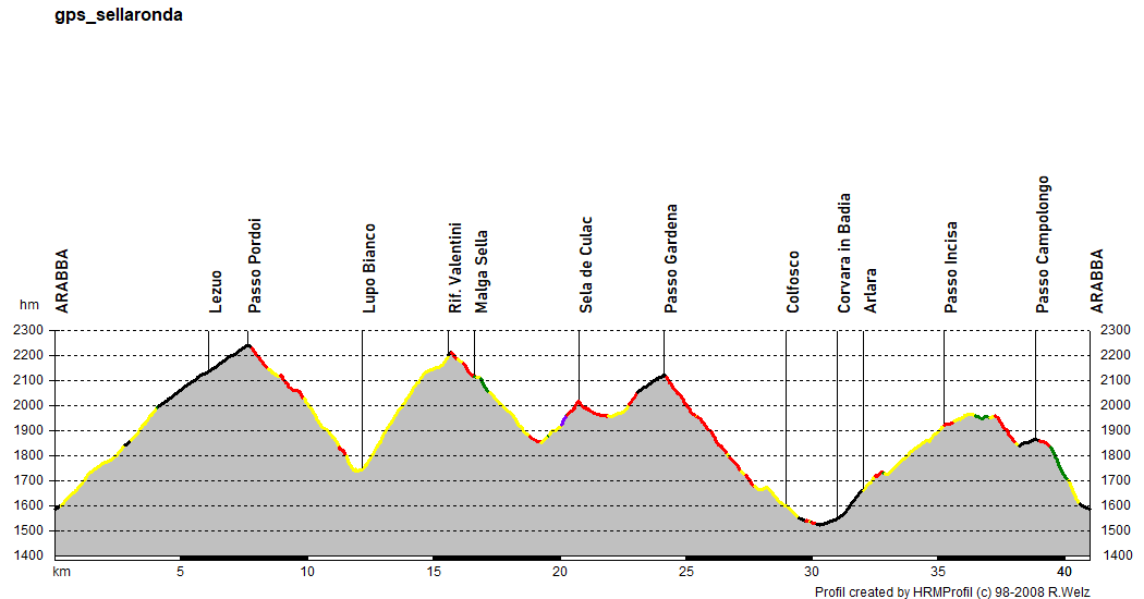 Lupo Bianco. Per valicare il passo Sella si affronta invece la durissima sterrata che, tenendosi all’ombra del Sassolungo, raggiunge il Rifugio Valentini; la discesa che segue è veloce, sinuosa e panoramica e corre dapprima su single track, quindi lungo le piste da sci. Terza asperità è il passo Gardena: con qualche tratto ripido si svalica dapprima la Sela de Culac continuando poi sul sentiero fino a Plan de Frea; da qui si torna progressivamente a salire concludendo la scalata sugli ultimi tornanti del passo. Ci si tuffa ora sul divertentissimo flow trail che scende in Val Badia, dove dossi e paraboliche animeranno la discesa più entusiasmante di tutto il percorso. L’ultima ascesa inizia invece con pendenze impegnative che diventano in seguito più agevoli salendo verso il Pralongià fino a passo Incisa; altri sentieri e single track conducono ora al passo Campolongo da dove l’ultima tecnica e sconnessa picchiata scende infine ad Arabba. |